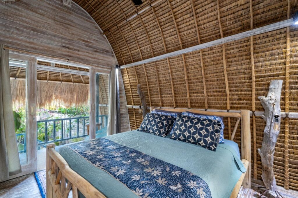 The lumbung is a traditional Indonesian design, elevated for airflow and privacy, offering a unique and memorable stay on Nusa Lembongan.